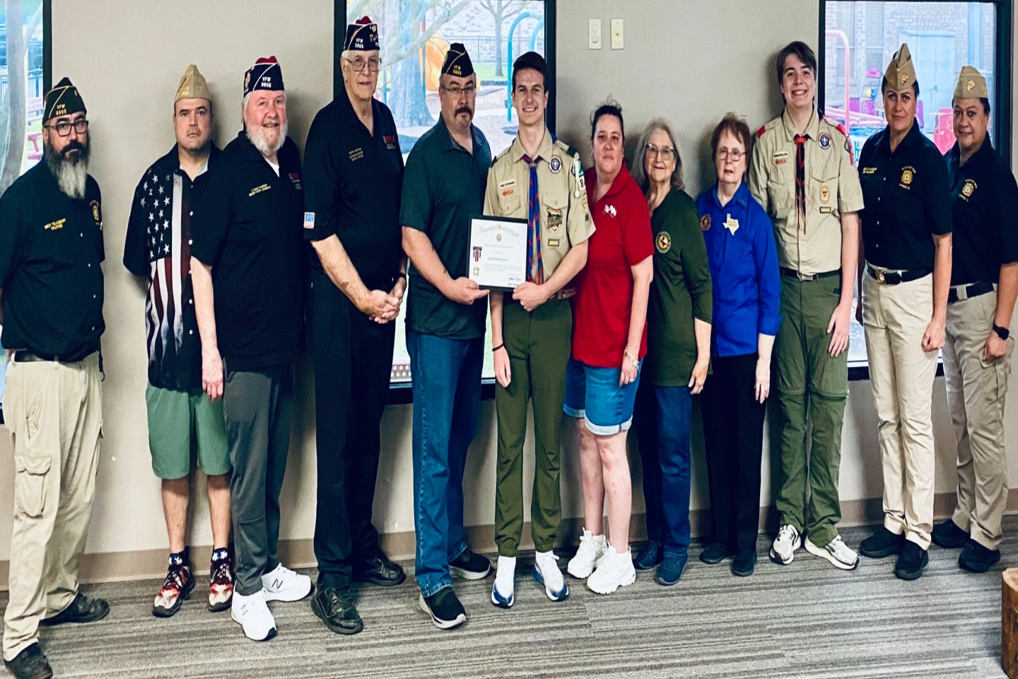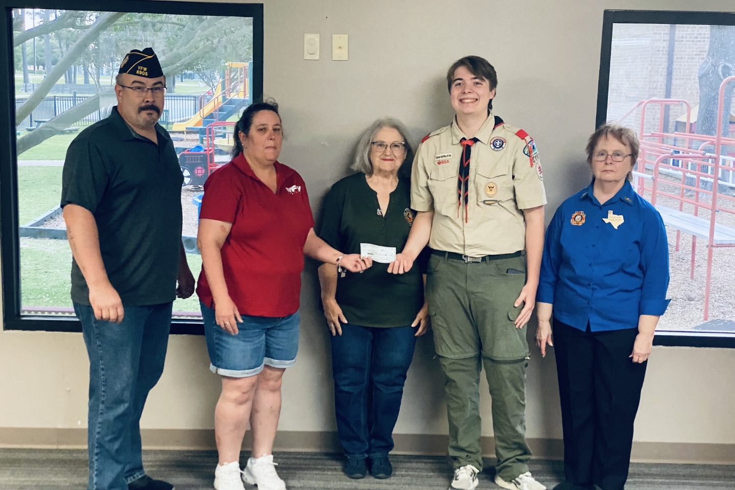 Congratulations to Texas Boys Outdoors for qualifying for a VFW Post 8905 donation. Thank you, Comrade David Santos, for presenting this to Mr. Roy Crush, President of TBO.